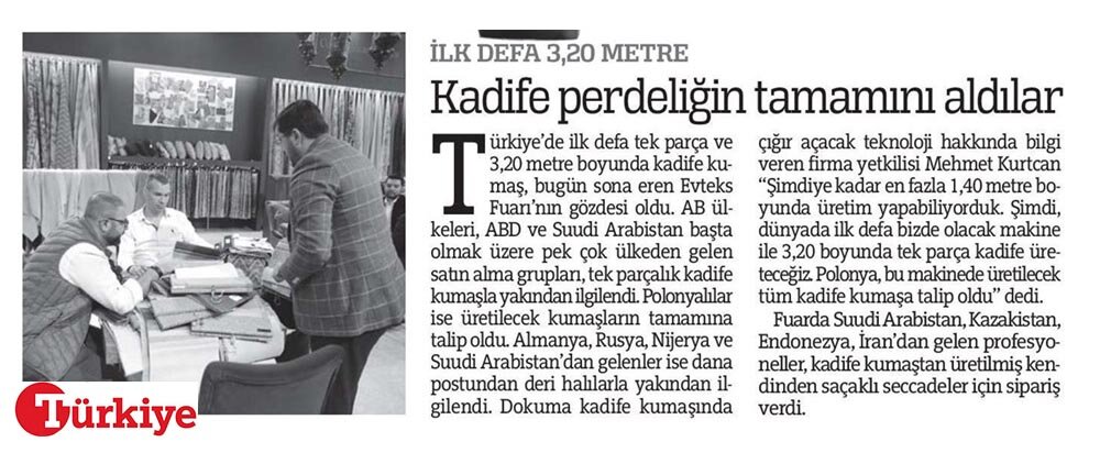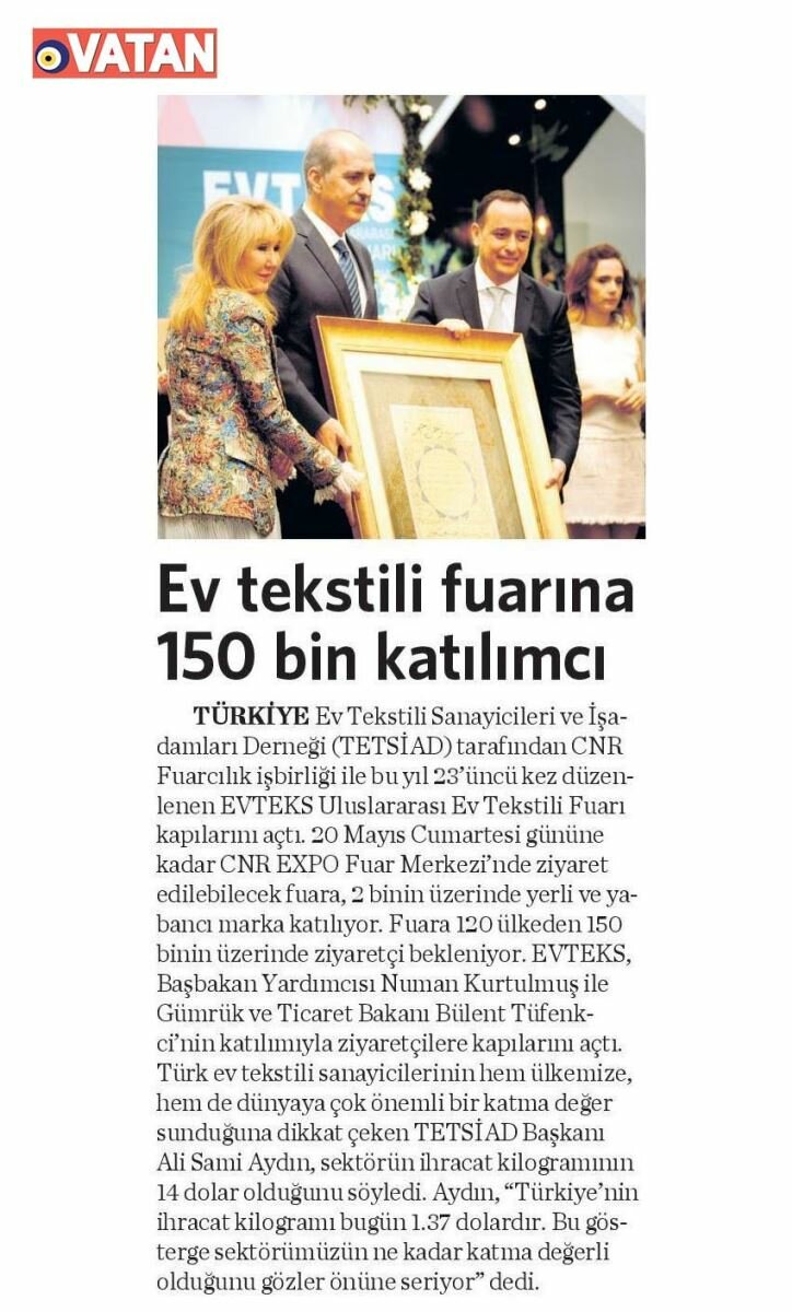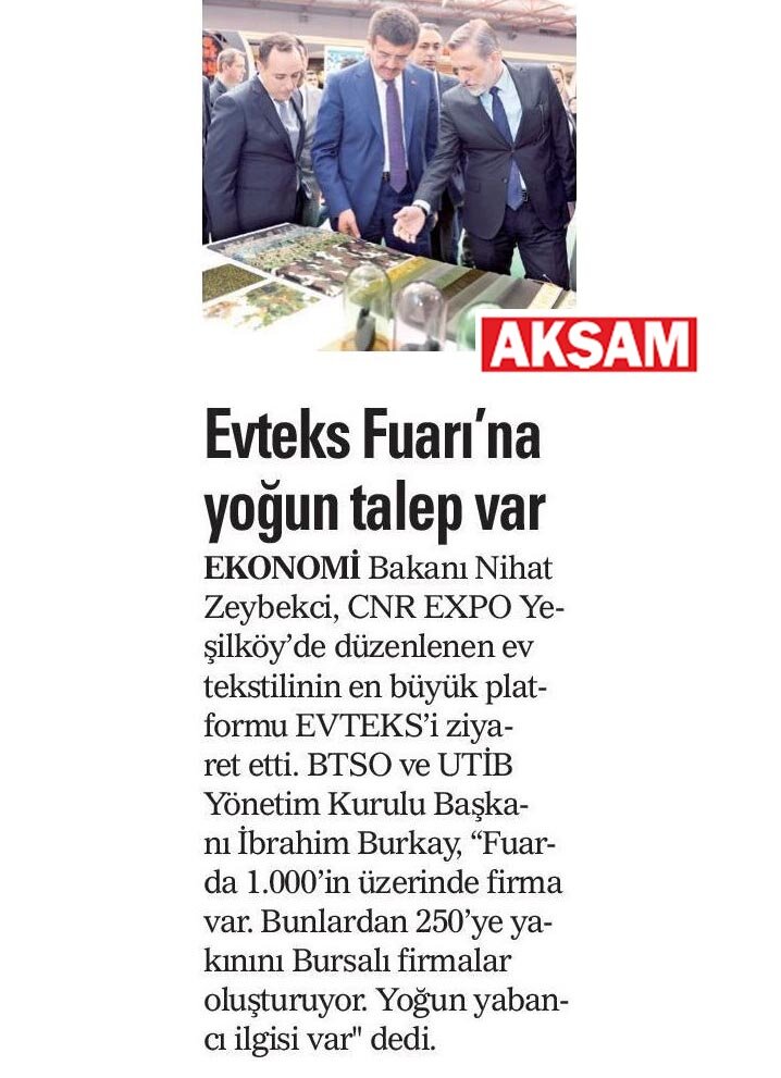 EVTEKS'e en yüksek katılım tekstilin başkenti olarak gösterilen Bursa'dan oldu. Tülden perde sistemlerine, banyo ve havlu ürünlerinden yatak odası ve döşemelik tekstiline kadar çok geniş bir ürün yelpazesine sahip olan Zorlu, Özdilek, Prestige, Harput, Minteks, Küççükçalık  gibi sektörün lideri olan Bursalı firmalar, ev tekstili modasında söz sahibi olduklarını gösterdiler